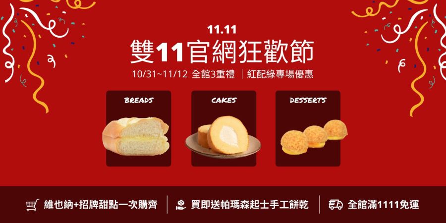 雙12.12限定紅配綠組合「麵包」「蛋糕」「午茶」一次滿足